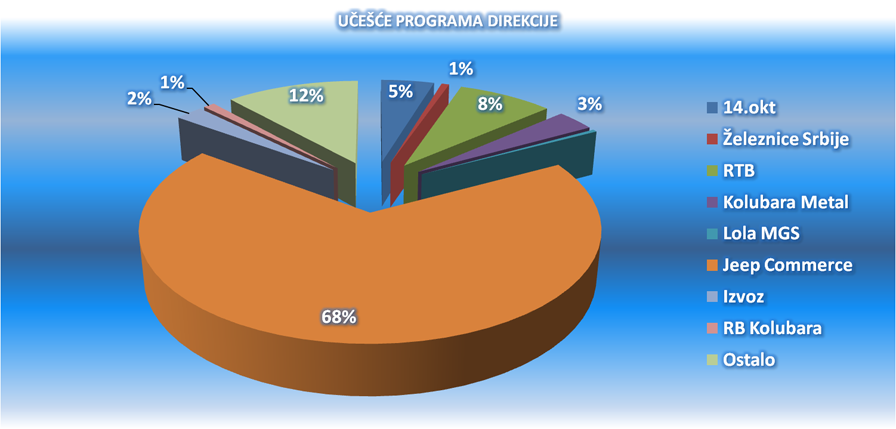Protokol: Alpos Aleksinac d.o.o. mesečno 800-1000t cevi Izrada rezervnih delova: RBB, Farmakom MB, Azotara Pančevo, GSP Beograd, HE Đerdap, TE Kostolac, TENT, TOS Kurim OS, Železnice Srbije, Solana Tuzla Izvoz cevi: iz programa Jeep Commerca ili Alpos Aleksinac Dodatno: Zavisna preduzeća Megalit Šumnik, Milus (crna metalurgija) Most Zemun – Borča ( čelik ) |